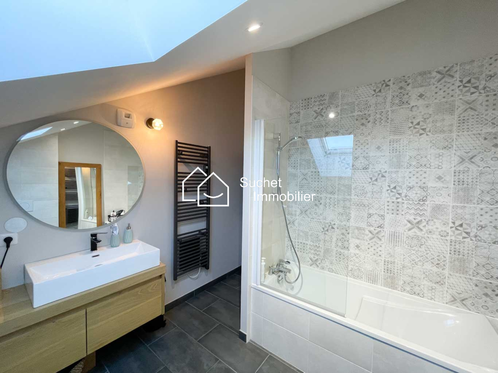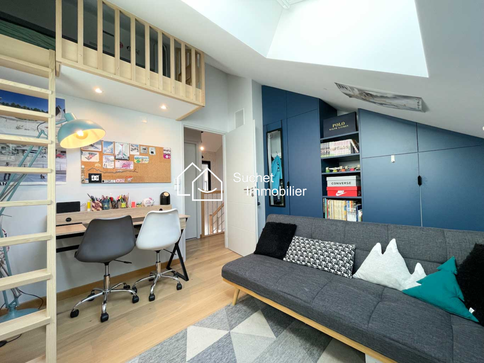 A l’étage, 3 chambres entièrement aménagées, un espace dressing, une salle de bains avec toilettes. Possibilité de faire une salle de bain dans la chambre parentale.