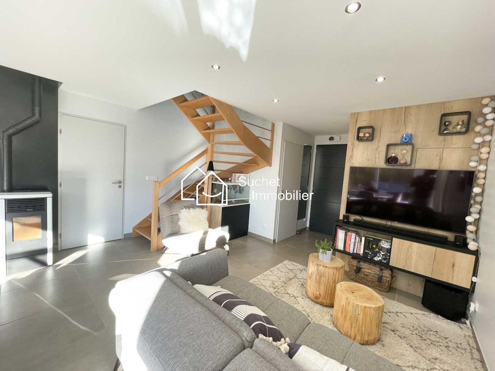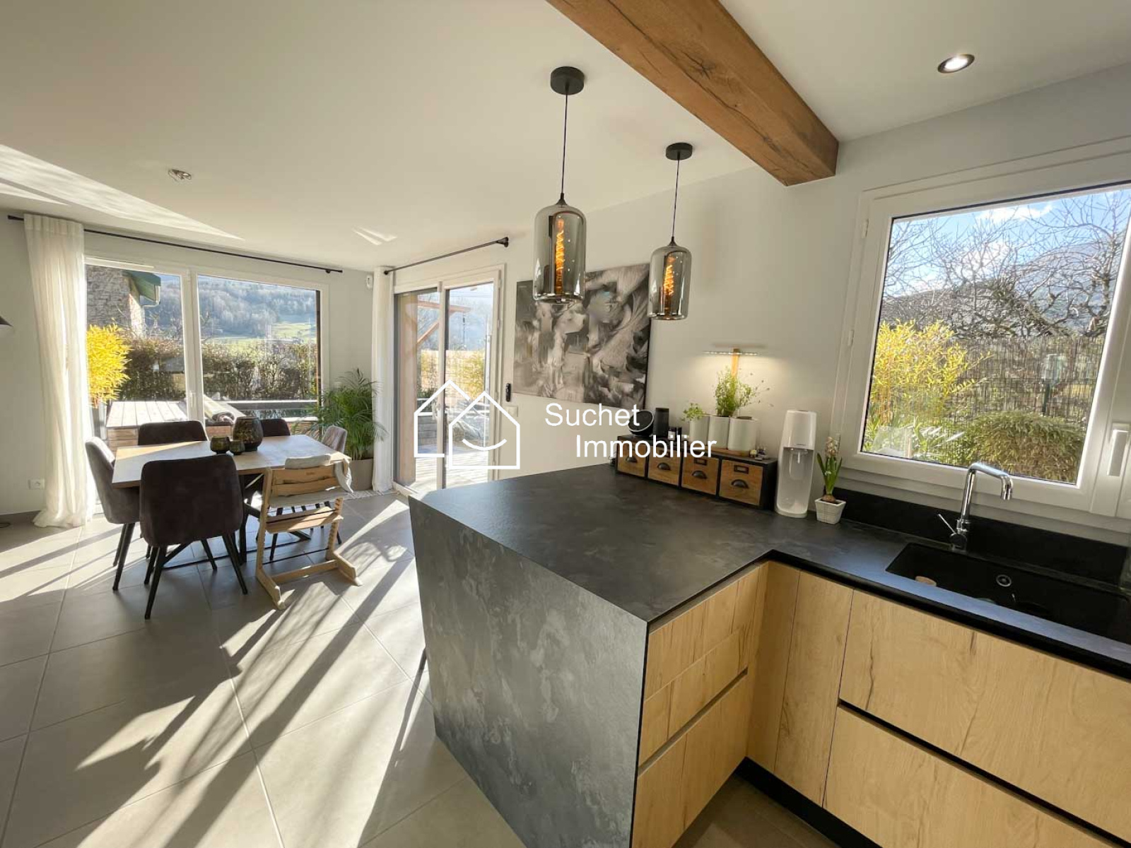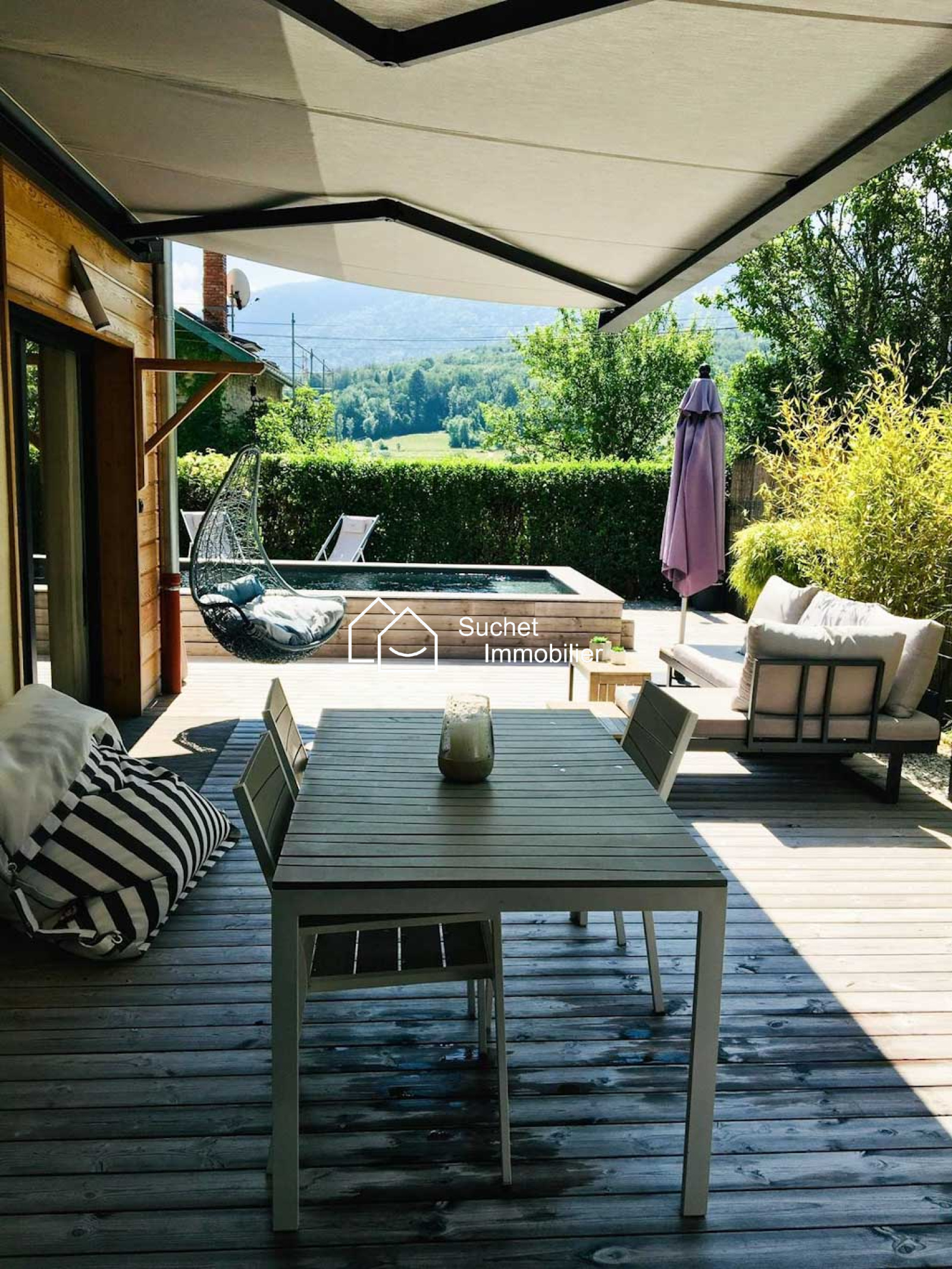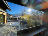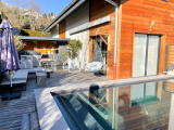 Sur les hauteurs de Saint-Jorioz au calme, jolie maison mitoyenne contemporaine avec piscine et vue dégagée sur les montagnes.