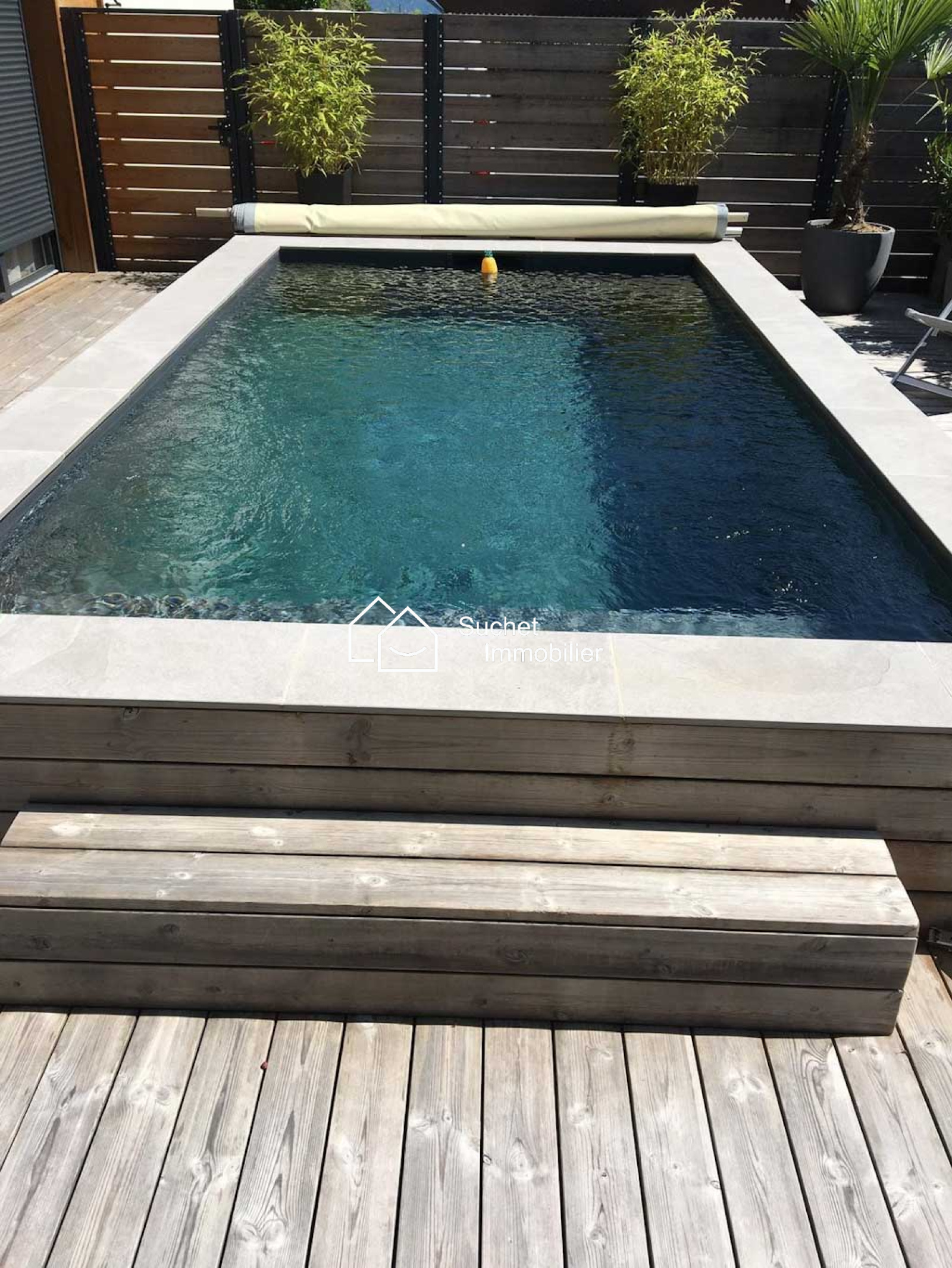 Le terrain d’environ 300 m2 se compose d’une piscine semi-enterrée, d’une grande terrasse et d’un espace abrité barbecue-bar.
