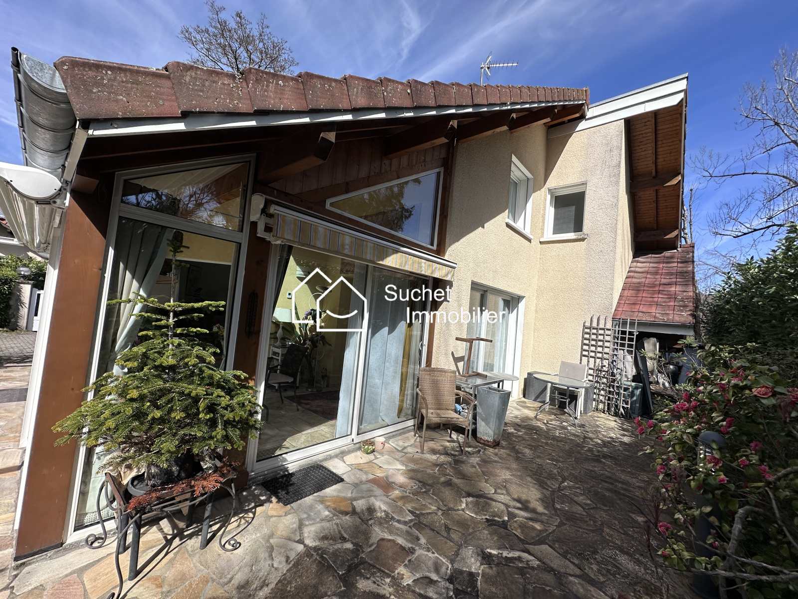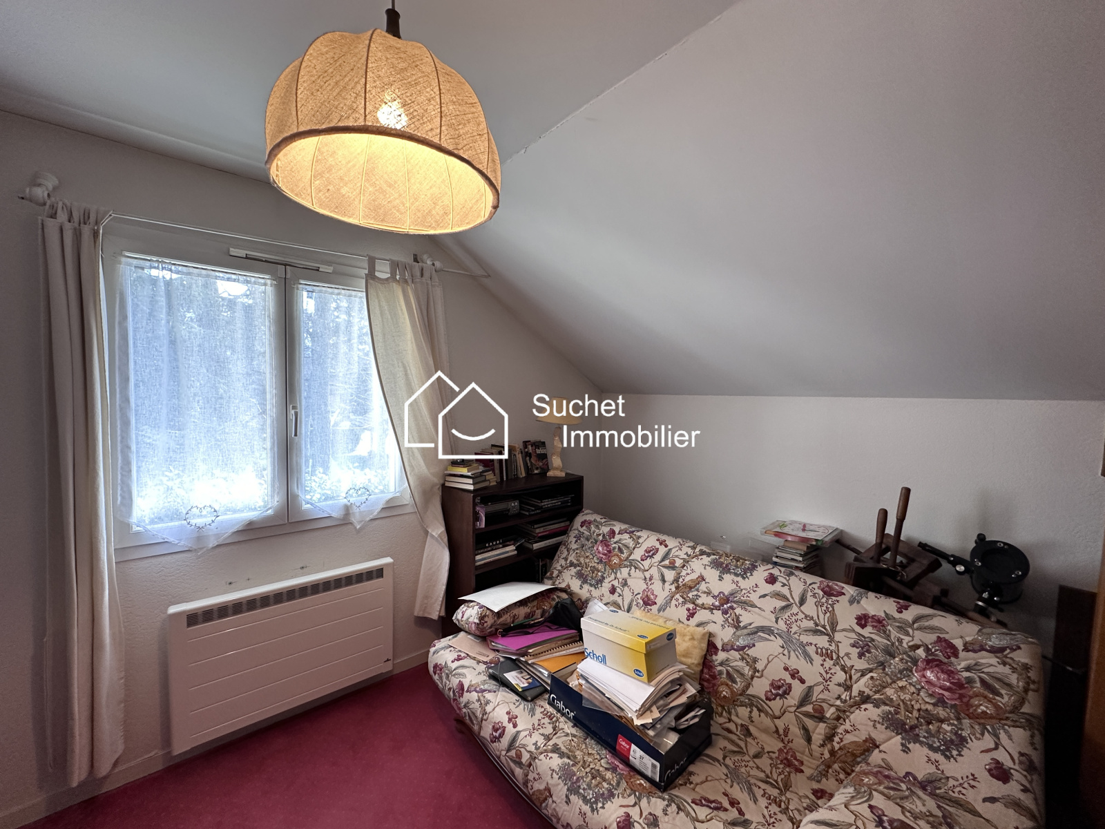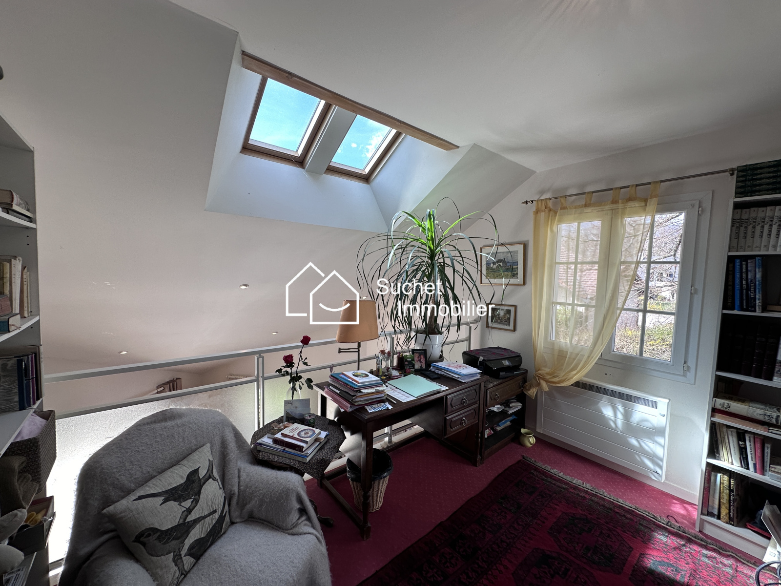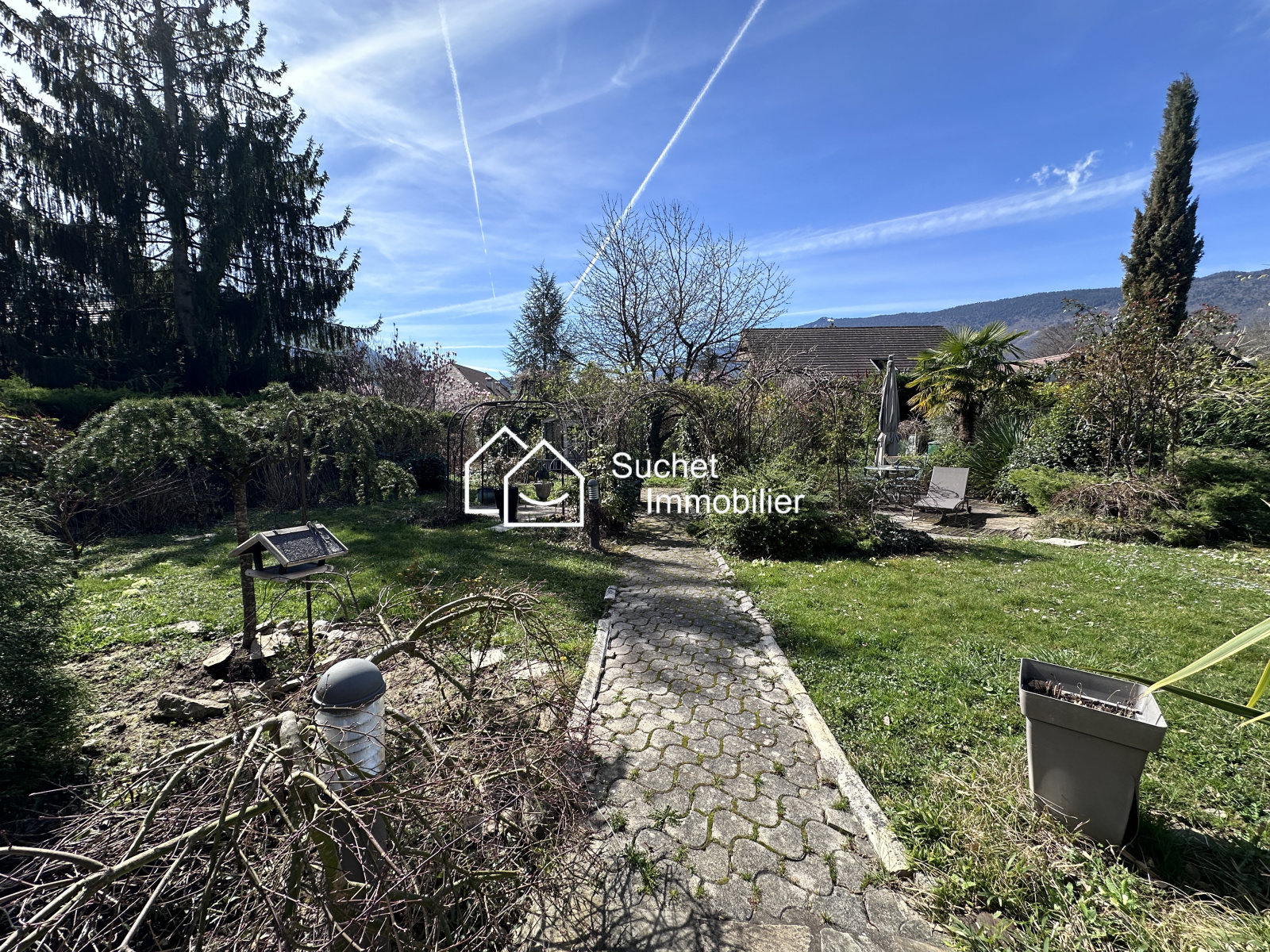 Saint-Jorioz, en retrait de la route du port, maison d'environ 140 m² (126 m² carrez) dans un environnement verdoyant. Vous apprécierez la toute proximité du lac, le calme le jardin entièrement arboré et cloturé ainsi que l'exposition plein sud. Au rez-de-chaussée : Hall d'entrée avec placard, wc indépendant, espace de stockage, suite parentale avec salle-de-bains-wc et dressing. Un espace de vie avec poêle et cuisine équipée semi-ouverte. A l'étage : 1 chambre, deux salles d'eau et une belle mezzanine pouvant facilement être transformée en chambre et un wc indépendant.