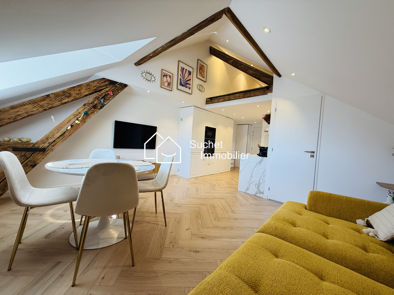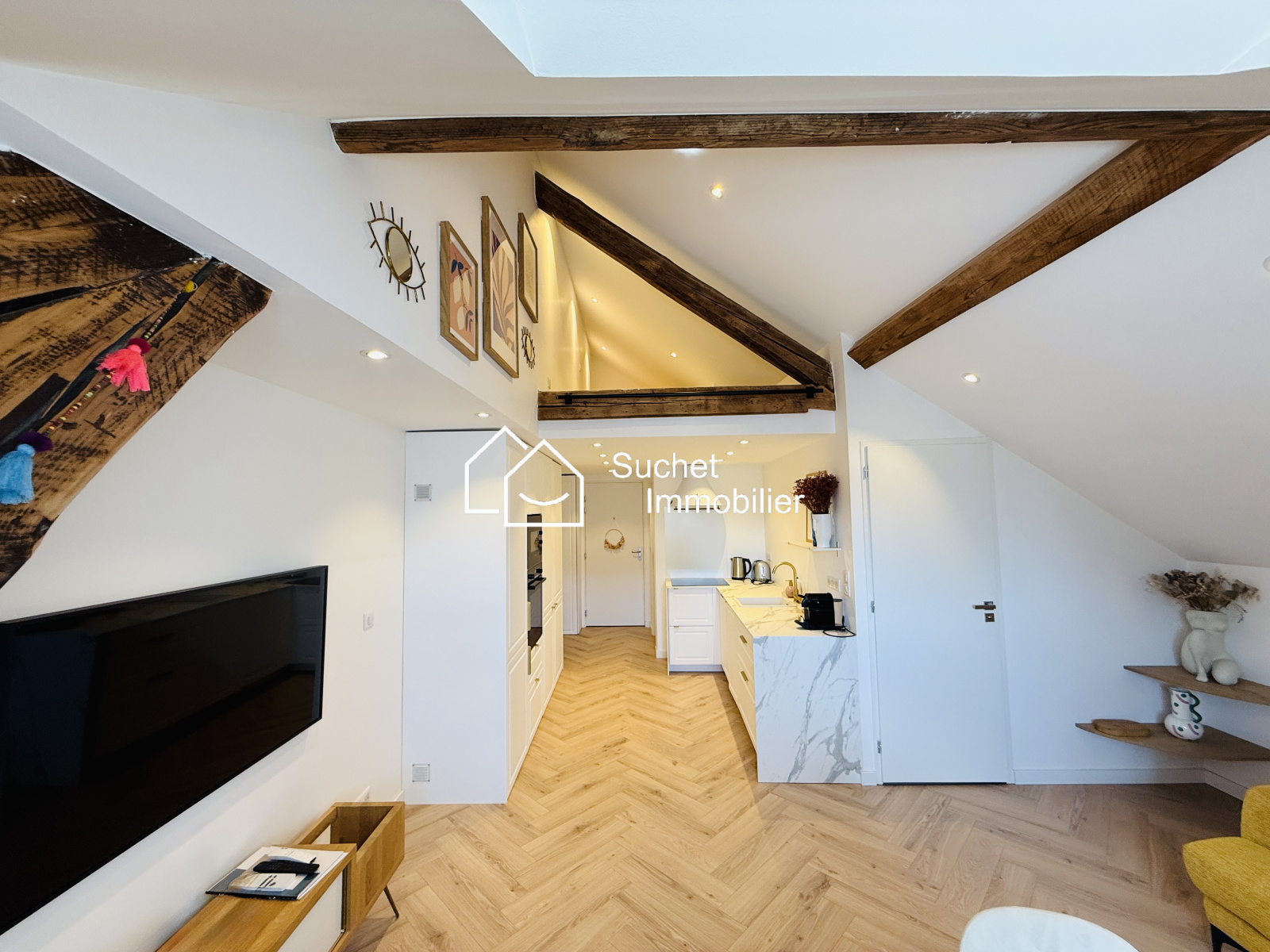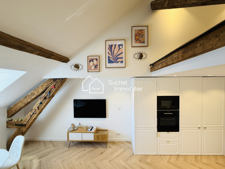 Exclusivité - Idéalement situé en plein cœur du centre piéton d’Annecy, ce charmant appartement de type 2, entièrement rénové, se trouve au dernier étage d’un immeuble ancien. D’une surface de 30 m² Carrez et 48 m² utiles, il offre un cadre de vie calme et chaleureux, avec une décoration soignée et des matériaux de qualité.