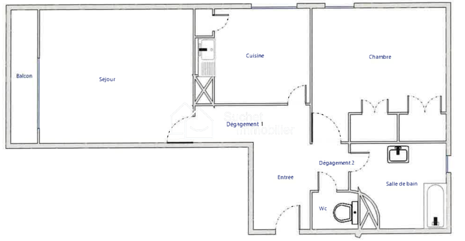 Appartement 2 pièce(s) 1 chambre(s) 48 m²