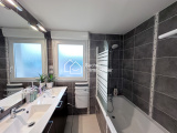 Un coin nuit comprenant 2 chambres avec placards, une salle-de-bains avec double vasque, coin machine et un wc indépendant.