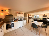 Un coin jour avec un espace de vie de près de 35 m² et une cuisine ouverte et équipée donnant sur la terrasse et le jardin.
