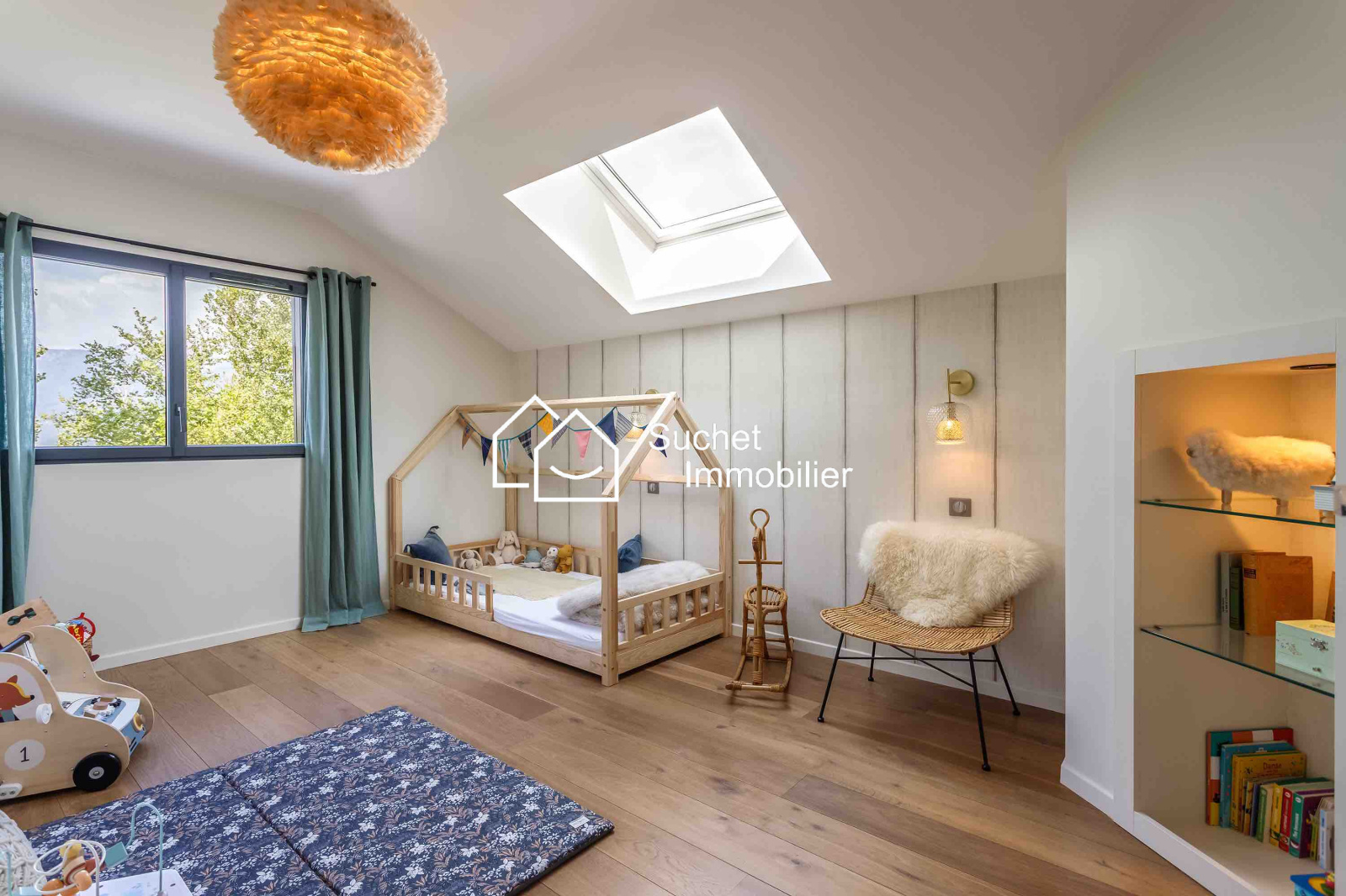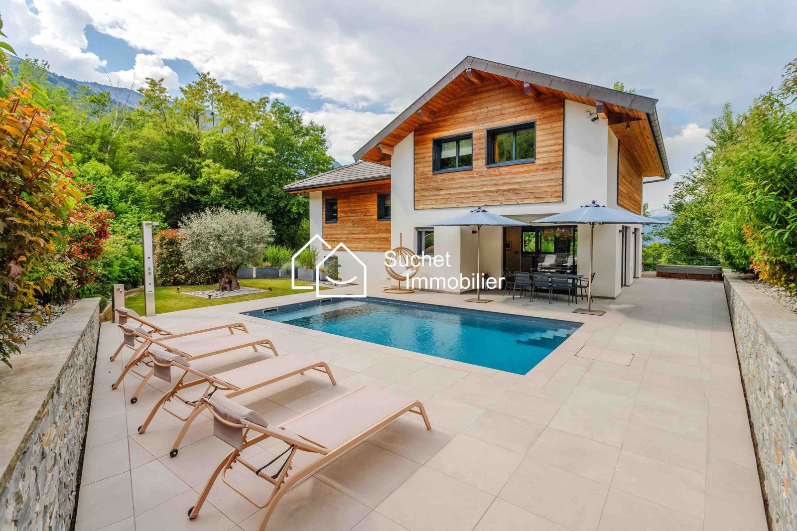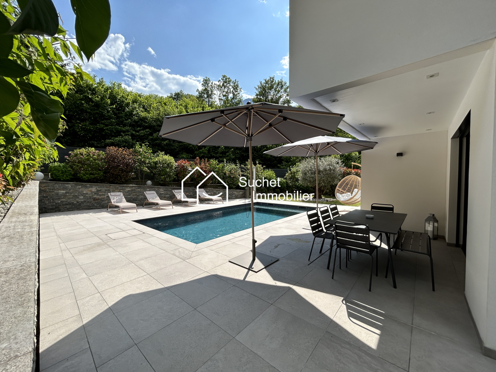 La maison comprend une très belle cuisine ouverte sur le séjour, une immense suite parentale avec plafond cathédrale, salle de bain et grand dressing. A l’étage, 3 chambres et une salle d’eau complètent ce bien.